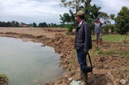 LINEAR.CO.ID | ACEH BARAT DAYA – Seluas 20 hektare lahan sawah milik Kelompok Padang Jati, Gampong Padang Baru, Kecamatan Susoh, Kabupaten Aceh Barat Daya (Abdya) rusak parah akibat diterjang banjir luapan sungai Krueng Beukah, pada Minggu malam (9-11-2025).