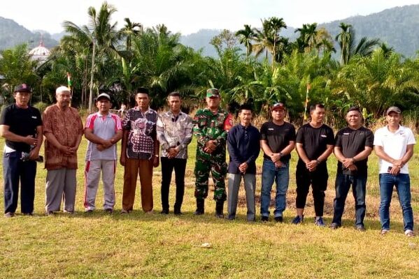 Wakil ketua I DPRK Abdya foto bersama usai melakukan tendangan pertama pertanda piala Mukim Krueng Batee di buka.