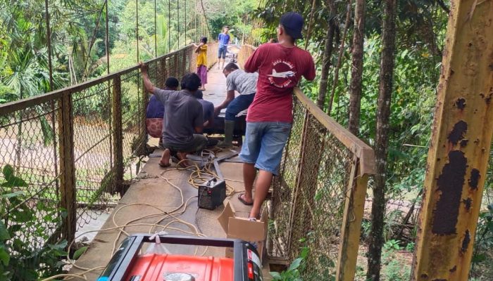 LINEAR.CO.ID | ACEH BARAT DAYA – Lantai jembatan gantung di Dusun Lhok Batee Intan atau lebih akrab disapa Lhok Keutapang, Desa Padang, Kecamatan Manggeng, Kabupaten Aceh Barat Daya (Abdya) memprihatinkan.