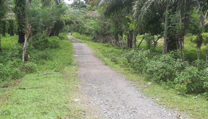 Jalan tersebut masih beralaskan tanah, bergelombang, licin dan becek saat musim hujan.