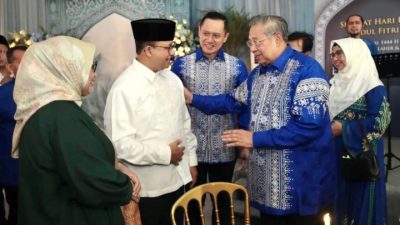 LINEAR.CO.ID,Jakarta-Anies Baswedan, Bacapres Koalisi Perubahan, menghadiri Silaturahmi Idul Fitri 1444 Hijriah yang diadakan Ketua Umum Partai Demokrat, Agus Harimurti Yudhoyono. Silaturahmi Idul Fitri ini diadakan Agus di kediamannya di Darmawangsa, sejak pk.19.00 wib di hari pertama lebaran.