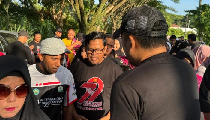 Wakil Bupati Abdya, Zaman Akli didampingi Kapolres dan wakil, Kejari Abdya, Ketua DPRK dan unsur Forkopimkab melepas peserta jalan santai di garis start tepatnya di pintu masuk Mapolres.