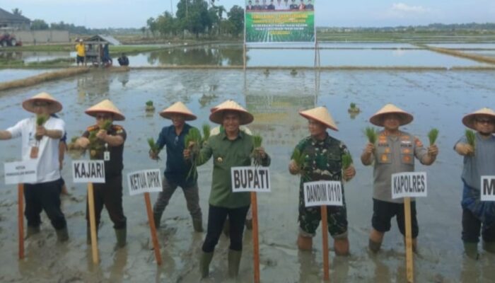 LINEAR.CO ID | ACEH BARAT DAYA – Bupati Kabupaten Aceh Barat Daya (Abdya) bersama anggota Forkopimda setempat menanam padi serentak Tahun 2025 di Gampong Kedai Siblah Kecamatan Blangpidie, Jum’at (31/10/2025). Tujuannya untuk meningkatkan swasembada pangan di daerah tersebut.