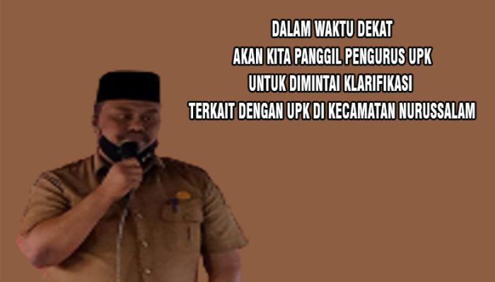 LINEAR.CO.ID | ACEH TIMUR – Plt Camat Nurussalam, Muzzakir, S.HI, MM akan memanggil pengurus Unit Peneglola kegiatan (UPK) kecamatan Nurussalam dalam waktu dekat.