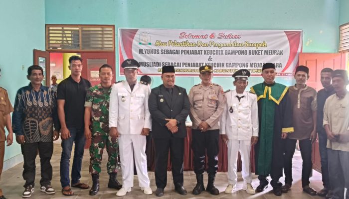 Adapun Pj Keuchik yang dilantik, Musliadi Pj Keuchik Meudang Ara menggantikan Keuchik Sopian yang purna masa jabatan dan Pj Keuchik M.Yunus gampong Buket Meurak menggantikan keuchik Abdurrahman yang juga purna masa jabatan