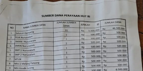Aceh Timur | • 08/08/2023 • Ini Sumber Dana Perayaan HUT RI di Kecamatan Nurussalam LINEAR.CO.ID | ACEH TIMUR- Perayaan HUT RI ke 78 Tahun di kecamatan nurussalam semakin mendekati...
