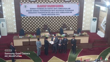 Subulussalam | • 26/09/2025 • APBK Subulussalam Rp. 648 M Belanja Rp. 702 M, Defisit Rp. 54 M LINEAR.CO.ID | SUBULUSSALAM – Anggaran Pendapatan dan Belanja Kota (APBK) Subulussalam Tahun Anggaran (TA) 2025...
