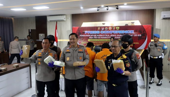 “Tiga terduga pelaku ditangkap bersama barang bukti sabu dengan berat mencapai 20 kilogram, serta perahu motor, di Kuala Idi, Kabupaten Aceh Timur,” kata Achmad Kartiko