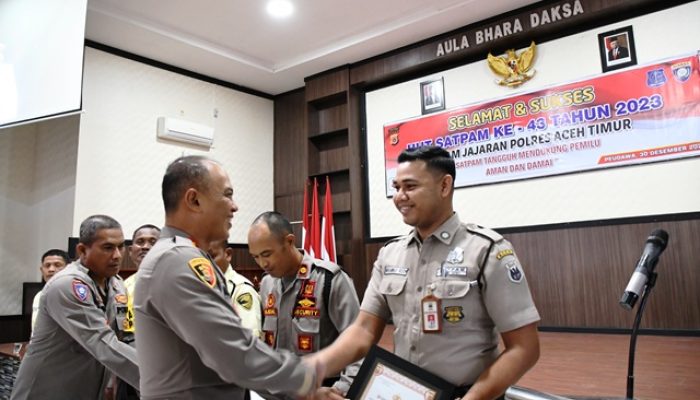 LINEAR.CO.ID | ACEH TIMUR – Dalam rangka peringatan Hari Ulang Tahun Satuan Pengamanan (Satpam) ke-43, Polres Aceh Timur Polda Aceh pada hari Sabtu, (30/12/2023) pagi menggelar syukuran berlangsung di Aula Bhara Daksa dengan mengambil tema; “Satpam Tangguh Mendukung Pemilu Aman dan Damai.”