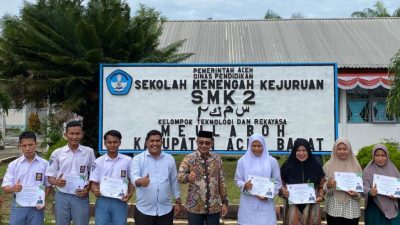 “Kita akui bahwa jumlah yang kita usulkan lebih banyak. Namun setelah melalui proses verifikasi, hanya sekitar 100 yang kita dapat, termasuk untuk 7 siswa di SMK 2 Meulaboh ini”, ujar Haji Uma.
