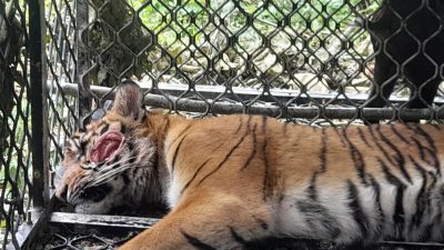 LINEAR.CO.ID | ACEH SELATAN – Seekor Harimau Sumatera yang selama ini telah meresahkan warga juga diduga menyerang tim Forum Konservasi Lauser (FKL) di kawasan hutan Sampali, Kecamatan Kluet Tengah, kabupaten Aceh Selatan (Asel) akhirnya masuk perangkap Sabtu (04-02-2023) Balai Konservasi Sumber Daya Alam (BKSD).