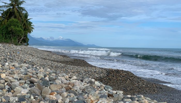 Sebuah pantai di Aceh Barat Daya, bukan pasir halus yang ditawarkan malah batu-batu kerikil nan unik.