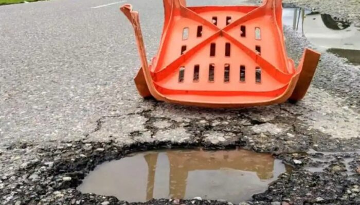 Lubang di jalan ini sangat membahayakan bagi kami pengendara, apalagi lubangnya dalam dan lebar. Lebih-lebih di depan showroom, sudah ditaruh kursi sebagai penanda,” kata Zikri, Kamis (20-11-2025).