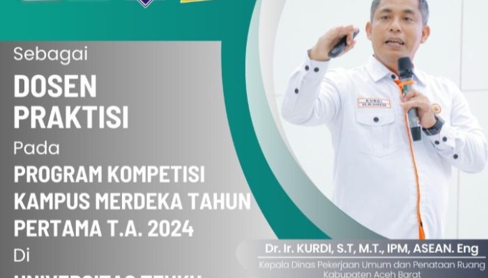 LINEAR.CO.ID– ACEH BARAT– Kepala Dinas Pekerjaan Umum dan Penataan Ruang (PUPR) Aceh Barat, diminta menjadi dosen praktisi di Universitas Teuku Umar, dengan materi manajemen proyek, Senin 11 Oktober 2024.