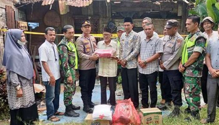 Aceh Timur – Sebagai bentuk empati kepada Nurdin Ishak, 84 tahun, warga Dusun Lam Kuta, Gampong Bintah, Kecamatan Madat Kabupaten Aceh Timur yang rumahnya terbakar, Kapolsek Madat Ipda Edi Munandar, S.Sos. pada hari Kamis, (04/01/2024) sore menyerahkan bantuan tanggap darurat.