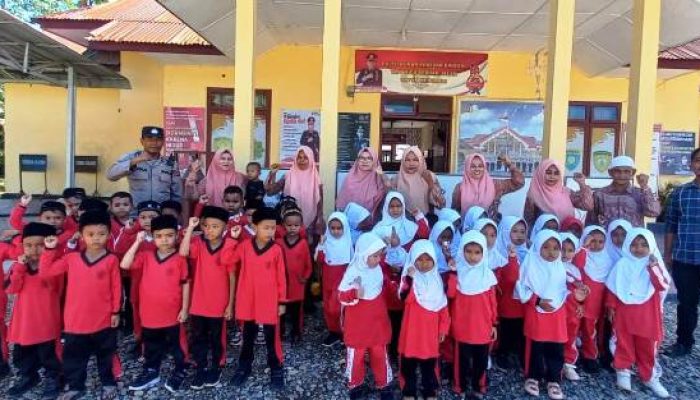 Keceriaan Anak PAUD Ayeum Mata Saat Dikenalkan Profesi Kepolisian oleh Anggota Polsek Pantee Bidari Polres Aceh Timur