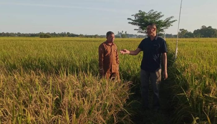 Foto : Kadis Pertanian dan Pangan Abdya Hendri Yadi bersama ketua Komisi A DPRK Sardiman sedang tinjaubpadi yang rusak akibat hama. (Jimy pratama/Linear.co.id)