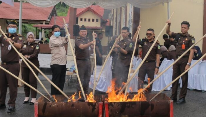 Pemusnahan dilakukan di halaman Kantor Kejari Abdya, di Blangpidie, Selasa, dipimpin oleh Kepala Kejaksaan Negeri Abdya, Bambang Heripurwanto, dan Kepala Seksi PAPBB Ricky Rosiwa.