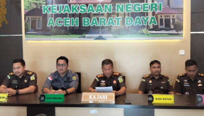 Hal itu disampaikan oleh Kajari Kardono didampingi Kasi Intelijen, Barry Sugiarto, Kasi Pidana Khusus (Pidsus) Leo Karnando Caniago serta Kasi Datun dan Kasi PAPBB dalam konferensi pers yang berlangsung di Lobi Lantai I Kejari Abdya, Selasa (24-2-2026).