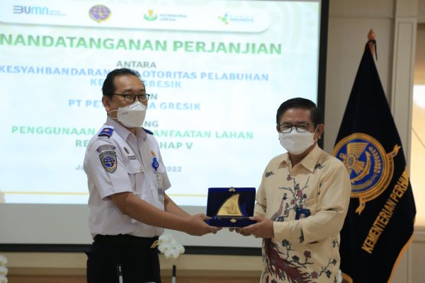 “Kemudian ini juga dilanjutkan dengan penyerahan sertifikat hak pengelolaan lahan (HPL) antara Kantor Kesyahbandaran dan Otoritas Pelabuhan Kelas II Gresik dengan PT Petrokimia Gresik,” ujarnya.