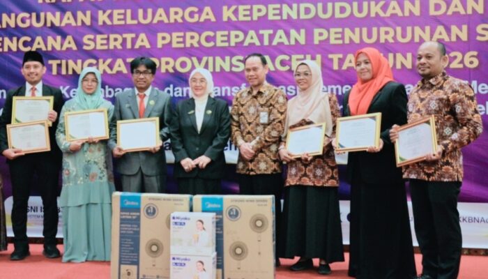 Penghargaan tersebut diserahkan langsung dalam kegiatan Rapat Koordinasi (Rakor) Program Bangga Kencana dan Percepatan Penurunan Stunting yang berlangsung di Hotel Hermes Palace, Banda Aceh, pada Selasa (14/04/2026).