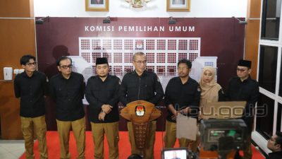 Turut hadir pada konferensi pers ini, Anggota KPU August Mellaz, Betty Epsilon Idroos, Idham Holik, Parsadaan Harahap, Mochammad Afifuddin dan Yulianto Sudrajat.