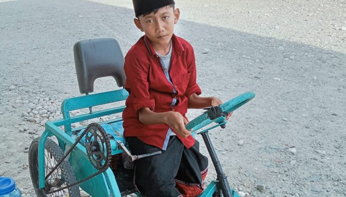 “Karena kakinya tidak bisa berjalan normal seperti anak lainnya, jadi dia terpaksa harus berjalan dengan lutut, karena tempat pengajiannya agak sedikit jauh dari biliknya (kamar), makanya dia membutuhkan sepeda,” sebutnya.