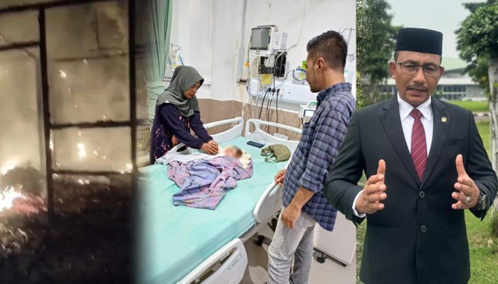 Kedatangan Mulyadi Syarief, Staf Ahli H. Sudirman, Sabtu (8/6/2024) sore di ruang rawat RSUD Meuraxa disambut Safrizal suami Putri Irmanda dan ayah Muhammad Kinzi, balita berusia 6 bulan yang saat ini menjalani proses perawatan medis atas luka bakar yang dialami akibat musibah kebakaran yang dialami.