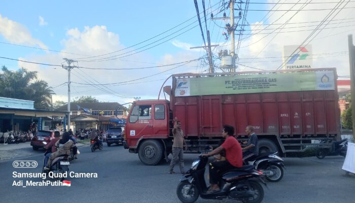 LINEAR.CO.ID | SUBULUSSALAM – Lalu lintas di areal Stasiun Pengisian Bahan Bakar Umum (SPBU) Oyon, di Kecamatan Simpang Kiri, Kota Subulussalam, Aceh. Diberlakukan satu arah, Minggu, (30/11/25).