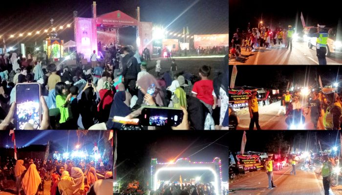 Ribuan kendaraan baik Roda Empat maupun Rada Dua berlalu lalang sebagai kendaraan warga untuk menyaksikan malam puncak MTQ itu.