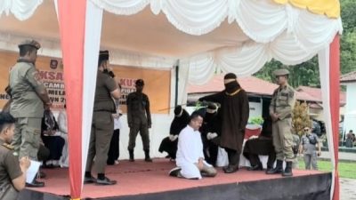 LINEAR.CO.ID | ACEH BARAT DAYA – Mantan Ketua Komisi Independen Pemilihan (KIP) Aceh Barat Daya (Abdya) Sanusi akhirnya menjalani eksekusi cambuk sebanyak 23 kali, yang dilaksanakan di halaman kantor Kejari setempat, Rabu (28/12/2022).