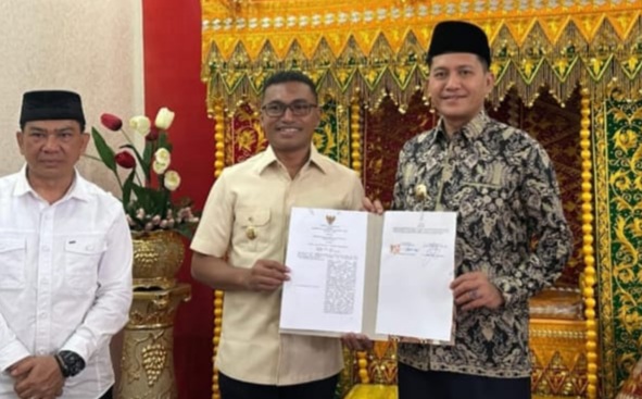 Penandatangan kerjasama dua pimpinan daerah, Bupati kabupaten Aceh Selatan H. Mirwan MS, S.E, M.Si dengan bupati Aceh Barat Daya (Abdya), Dr, Safaruddin berlangsung di pendopo bupati Abdya di Blangpidie, Kamis, 31 Oktober 2025.