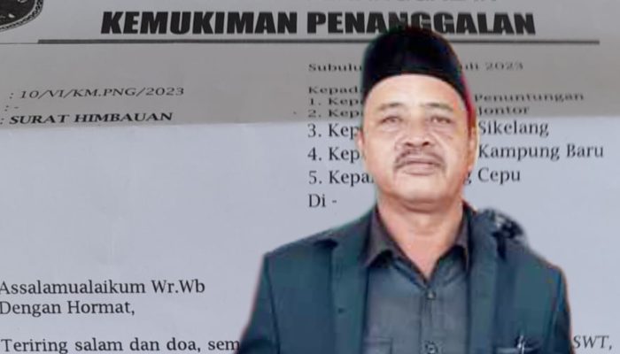 Kepala Mukim Kemukiman Penanggalan ini juga turut mengeluarkan surat. Kemukiman Penanggalan dengan nomor :10/VI/KM-PNG/2023 dengan Tembusan Kapolres Subulussalam, Walikota Subulussalam dan Majelis Adat Aceh.