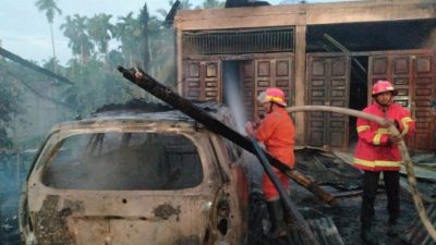 “Selain ruko dua pintu, api juga menghanguskan satu unit mobil Innova, dua unit sepmor, satu unit becak, satu mesin sinsau, dan kurang lebih 100 tabung gas besar dan kecil,”. (*)