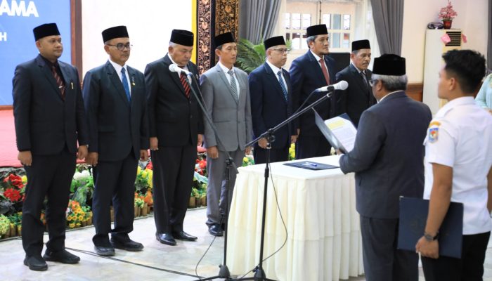 Linear.co.id I Lhoksukon – Penjabat (Pj) Bupati Aceh Utara Dr Mahyuzar, MSi, melantik dan mengambil sumpah sembilan pejabat pada Jabatan Pimpinan Tinggi (JPT) Pratama atau setara Eselon II yang menduduki jabatan Kepala Dinas, Badan, Asisten dan Staf Ahli Bupati.