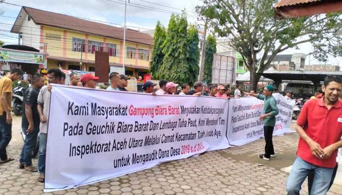 “Kami masyarakat Gampong Biara Barat menyatakan mosi tidak percaya kepada pemerintah Gampong, khususnya Geuchik Biara Barat dan Lembaga Tuha Peut. Oleh karena nya kami mendesak Tim Inspektorat Aceh Utara melalui Camat Tanah Jambo Aye untuk mengaudit Dana Desa dari 2019 hingga 2023,” ungkap warga Biara Barat.