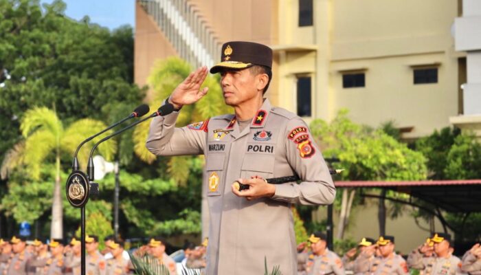 LINEAR.CO.ID | Banda Aceh – Kapolda Aceh, Brigjen Pol Drs. Marzuki Ali Basyah, memimpin apel perdana usai resmi menjabat di Lapangan Apel Polda Aceh, Senin, 25 Agustus 2025. Dalam kesempatan itu, ia meminta seluruh peserta apel untuk tertawa dan berteriak dengan keras serta lepas sebagai bentuk peregangan untuk membakar semangat personel.