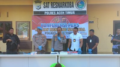 “Tersangka mengaku mengedarkan sabu sesuai arahan PT dan saat ini kami masih mendalami dengan melakukan lidik mengenai keberadaan PT. Akibat perbuatannya itu tersangka dikenakan pasal 114 ayat (2) subsider pasal 112 ayat (2) UU RI No. 35 tahun 2009 tentang Narkotika,” Terang Kapolres Aceh Timur AKBP Andy Rahmansyah, S.I.K.