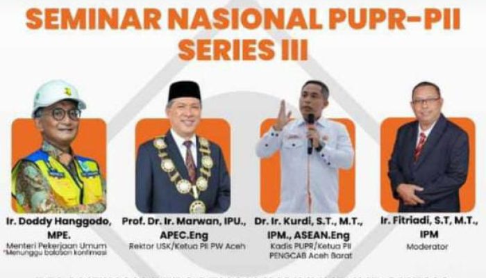 LINEAR.CO.ID|ACEH BARAT– Dinas Pekerjaan Umum dan Penataan Ruang (PUPR) Kabupaten Aceh Barat berkolaborasi dengan Pengurus Cabang Persatuan Insinyur Indonesia (PII) Aceh Barat akan mengelar Seminar Nasional Series Ketiga sekaligus pelantikan PII pengurus Cabang Aceh Barat periode 2024-2027.