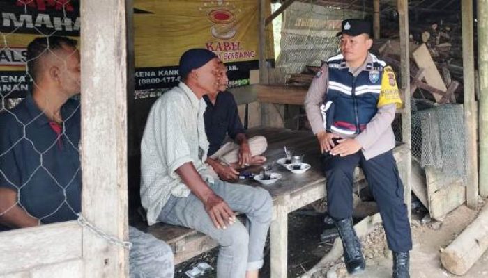 Sambil Ngopi Bareng Warga, Ini Pesan Bhabinkamtibmas Polsek Peureulak