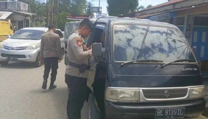 Personil satlantas Abdya sedang melakukan pengecekan mobil di kecamatan Babahrot. Senin 05-08-2024.