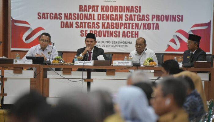 LINEAR I Banda Aceh – Wakil Gubernur Aceh, H. Fadhlullah, SE., membuka secara resmi Rapat Konsolidasi Satuan Tugas (Satgas) Nasional dengan Satgas Provinsi serta Satgas Kabupaten/Kota se-Aceh dalam rangka percepatan pelaksanaan Koperasi Desa (Kopdes) Merah Putih. Pertemuan tersebut digelar di Gedung Serbaguna Setda Aceh, Selasa (2/9/2025).