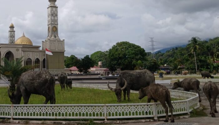 LINEAR.CO.ID | ACEH BARAT DAYA – Gerombilan kerbau kembali masuk ke dalam pekarangan Masjid Agung Baitul Ghafur, Kabupaten Aceh Barat Daya (Abdya). Peristiwa tersebut terjadi pada Minggu (28-12-2025) dan menuai sorotan warga karena dinilai mencerminkan lemahnya pengawasan di lingkungan masjid kebanggaan masyarakat Abdya itu.