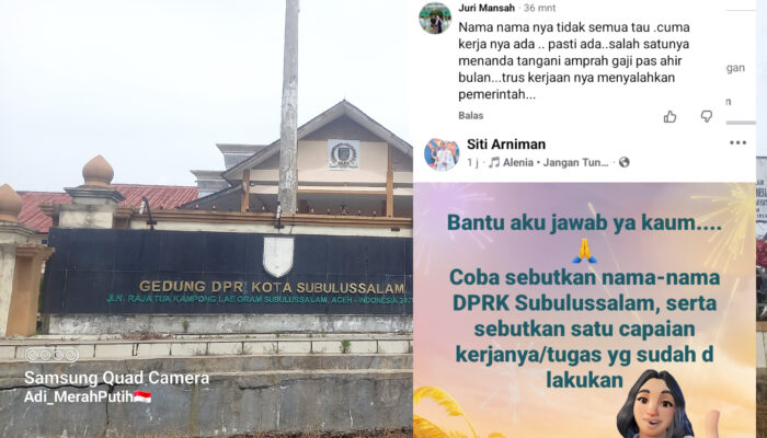 Kritikan mempertanyakan kinerja DPRK Subulussalam ini diketahui di Sosial Media (Sosmed) laman Facebook atas nama Siti Arniman yang merupakan PPPK Paruh Waktu di Sekretariat Daerah Kota (Setdako) Subulussalam.