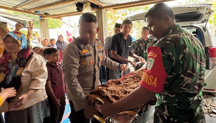 Sejumlah personel Polsek Setia serta Babinsa juga turut hadir di lokasi untuk memberikan dukungan kepada keluarga yang berduka.