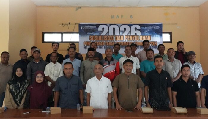 LINEAR.CO.ID | ACEH BARAT DAYA – Kantor Pertanahan (Kantah) Aceh Barat Daya (Abdya) melaksanakan sosialisasi dan penyuluhan Program Sertipikat Pendaftaran Tanah Sistematis Lengkap (PTSL) Tahun Anggaran 2026 di Aula Kantor Kecamatan Susoh, Selasa (2/2/2026).