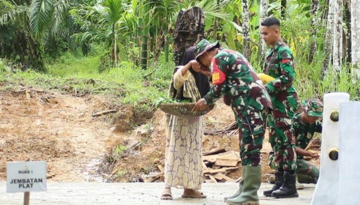 Sikap ini juga dilakukan salah satunya oleh Nurmala, seusai pulang dari kebun. Dengan tulus dan berani Nurmala menghampiri salah satu TNI yang tidak lain adalah Komandan Satuan Tugas (Dansatgas) TMMD Lektol Inf Beni Maradona, S.Sos tepat di atas jembatan plat yang tidak seberapa jauh dari area kebunnya.