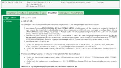 Hal itu diketahui melalui laman Sistem Informasi Penelurusan Perkara (SIPP) PN Blangpidie pada Kamis, (29/12/2022) dengan nomor Perkara 61/Pid.Sus/2022/PN Bpd.