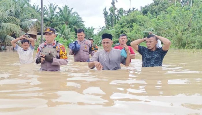 LINEAR.CO.ID | ACEH TIMUR – Kapolsek Pantee Bidari Ipda Munawir, HRD.,S.K.M. pada hari Senin, (25/12/2023) petang, memantau langsung perkembangan banjir dan genangan air pada sejumlah gampong diantaranya; Gampong, Alue Ie Mirah, Pantee Rambong, Pantee Labu, Blang Seunong, Sijudo dan Sahraja.