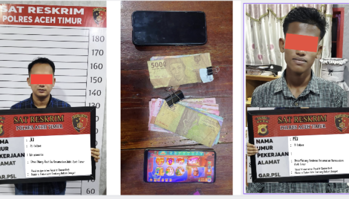 Aceh Timur – Pada hari Senin, (29/01/2024) sekira pukul 01.00 WIB, anggota Opsnal Satreskrim Polres Aceh Timur Polda Aceh berhasil mengungkap pelaku tindak pidana jarimah maisir (chip di aplikasi higgs domino island). Pelaku berinisial JU, 35 tahun, warga Desa Blang Pauh Sa, Kecamatan Julok dan MU, 19 tahun, warga Desa Matang Neuheun, Kecamatan Nurussalam.